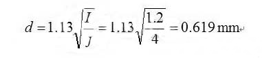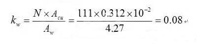 选择d=0.63mm,d’=0.70mm,截面积Acu=0.312mm2。