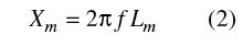 这里:Pg=源的最大可用功率、Pc=负载功率、Rg=源阻抗、Xm=磁抗。最后这个参数可通过下式由工作频率f和磁芯的磁化电感Lm求得: