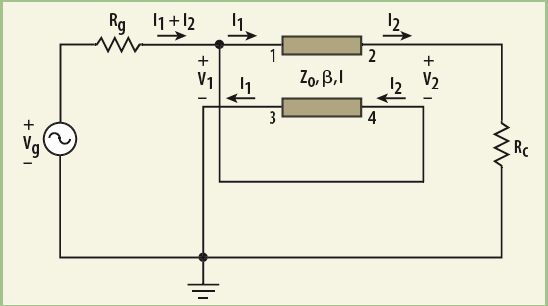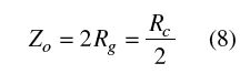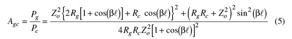 这里:Rg=源阻抗、Rc=负载阻抗、Zo=传输线特性阻抗、βl=相位因子、l=kλ=传输线长度(这里λ是波长,k是小数值)。