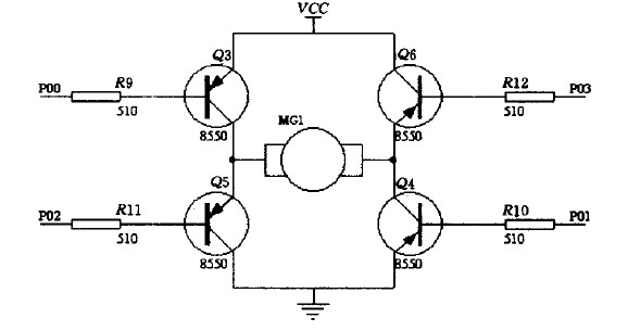 本系统将以不同的电机做出不同的动作,来模拟说明智能家居对系统控制的响应。如图5所示,当分机的单片机收到本机的地址信息,便提取信息中的数据,根据数据的命令,若把P0.0,P0.1脚置成低电平,其他为高电平,则Q3、Q4管导通,电机便正向旋转,若把P0.2,P0.3脚置成低电平,其他为高电平,则Q5、Q6管导通,电机便反向旋转(以前一情况为正向时)。若一台分机上连多个电机,有多台分机,便可以实现在智能家居环境中对家庭各个设备的同步控制。
