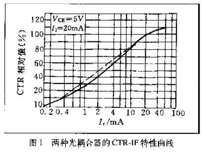 由图1可见,普通光耦合器的CTR-IF特性曲线呈非线性,在IF较小时的非线性失真尤为严重,因此它不适合传输模拟信号。线性光耦合器的CTR-IF特性曲线具有良好的线性度,特别是在传输小信号时,其交流电流传输比(ΔCTR=ΔIC/ΔIF)很接近于直流电流传输比CTR值。因此,它适合传输模拟电压或电流信号,能使输出与输入之间呈线性关系。这是其重要特性。