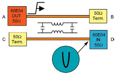 泰克8000B系列仪器中安装有80E04电子采样???,是成功测量串扰的理想仪器组合。80E04是一款双通道采样??椋幸桓鯰DR阶跃电压产生器,能产生上升时间为17ps的250mv窄脉冲,并以50欧姆的源阻抗输出。测试人员只需连接待测PCB即可。
