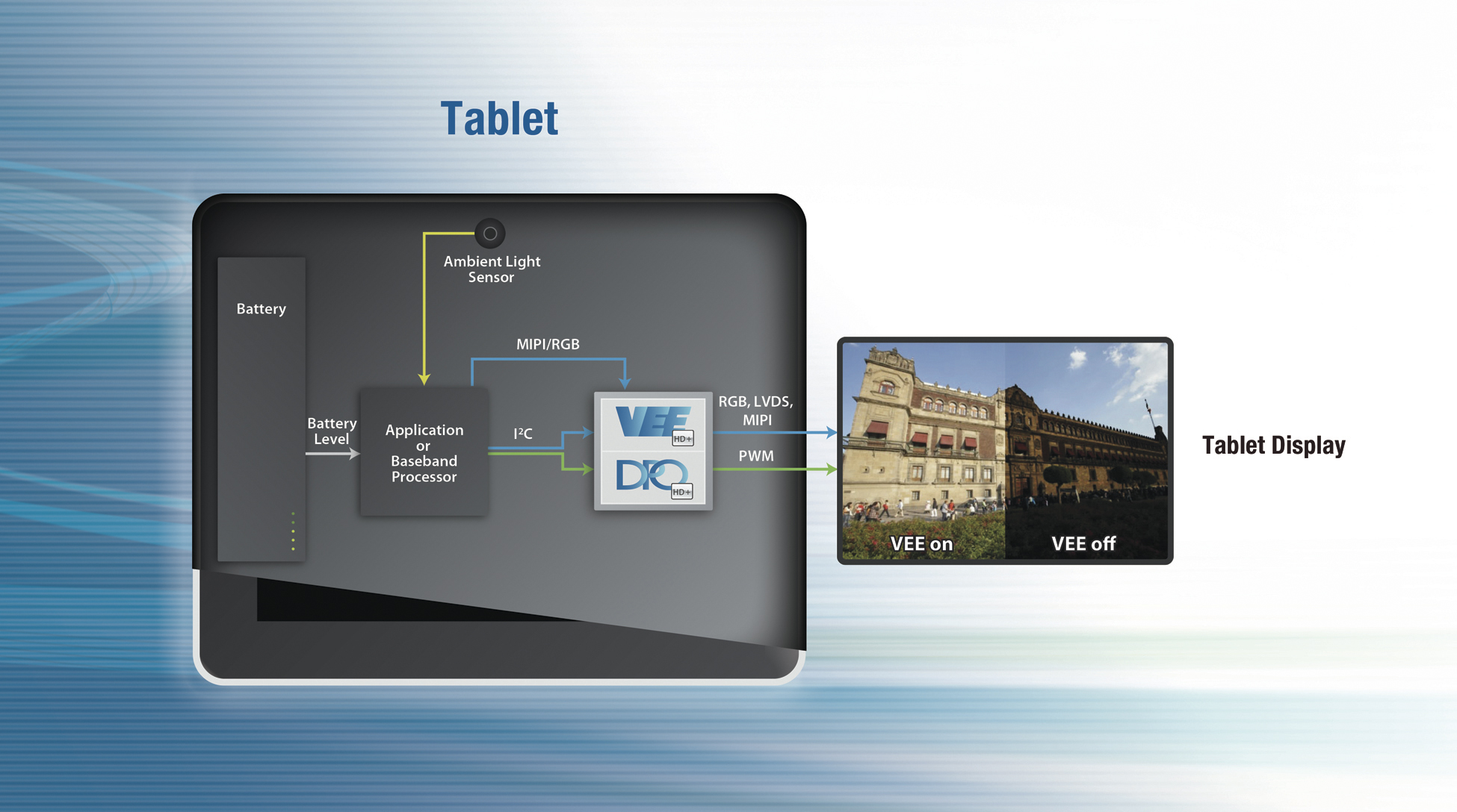 ArcticLink III VX系列与现有的独立连接解决方案不同,它可以在阳光下提高显示屏的可视性,并且把电池寿命延长了 50%。QuickLogic的VEE HD +技术是基于人类视觉模型,大大地优化了显示内容的动态范围,对比度和色彩饱和度,无论在甚样的观看环境中,用户都会感到视觉效果是自然的。 QuickLogic的DPO HD +技术与VEE HD+技术一起,根据环境亮度和内容来调节显示屏亮度,延长了电池的寿命,没有对用户的体验产生不利的影响。