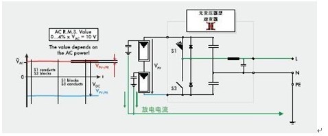 将来自光伏组件的电压采用高频率(20kHz)转换过程中,高频电压应等同于电网电压峰值;这些电压在逆变器内部被认为是干扰,滤波器可以阻断这些干扰,防止其进入电网。但在理论上,阻止来自发电电源侧的直流分量进入交流电网是不可能绝对实现的。