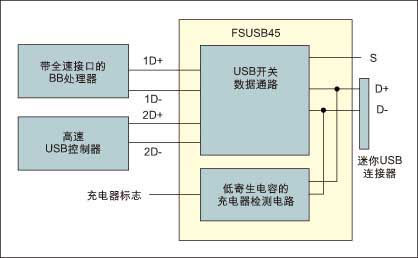 随着目前的市场趋势向单一USB充电器/数据端口的转变,特殊应用USB开关已经成为带充电器检测功能的手机设计中的一种常规配置。图2是这种开关应用的一个范例。