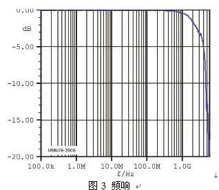图3中截止频率大约为5GHz,远离USB 480Mb/s收发器的正常工作频率,因此,USB收发器可以安全工作。