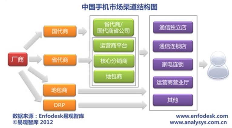根据易观智库分析,目前我国手机市场渠道开始进入转型期。首先一个比较明显的变化是手机厂商直供模式的加强,渠道的扁平化趋势进一步加剧。比较明显的一个例子是三星手机的渠道改革,从2010年12月起,三星手机全面推行了直供模式,经过一年多的发展,三星对手机渠道的把控能力不断得到了提升。