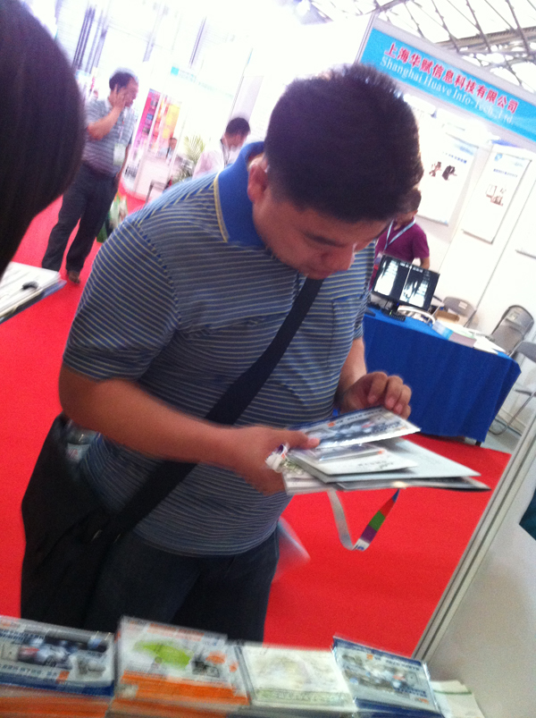 1、我们派出2名专业发行人员佩戴醒目的EP飘带在展位和展览馆发送和接待观众,主动派发和收取信息查询表格。