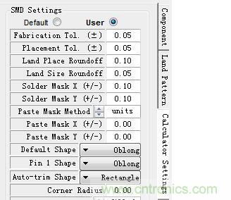 4、点击Calculator Settings(竖排字),选User将Solder Mask X及Y改为0.1(一般阻焊层比焊盘大0.1mm)