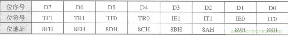 定时器/计数器控制寄存器在特殊功能寄存器中,字节地址为88H,位地址(由低到高)分别为88H~8FH,该寄存器可进行位寻址。TCON寄存器用来控制定时器启,停,标志寄存器溢出和中断情况。单片机复位时TCON全部被清零。各位被赋不同值的含义如下: