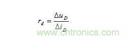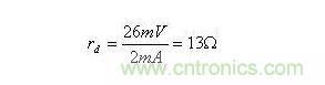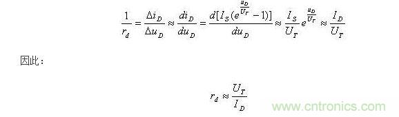 ID为静态电流,常温下UT=26mV。可知,静态电流ID越大,rd将越小。设UD=0.7V时,ID=2mA。由此可得直流电阻RD=350,而动态电阻(交流电阻)为: