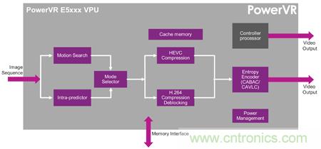 •PowerVR E5800:专为实现4K @ 60fps而设计的专业消费者级编码器,具备10位精度的增强色深,可实现遵循ITU-R rec BT.2020标准的视频编码功能