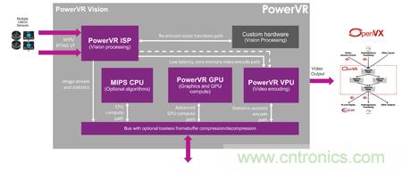 PowerVR系列产品中的每款内核均能与任何一种总线架构、处理器或其他IP搭配运作,Imagination已完成所有PowerVR多媒体内核之间的优化设计,以最大化系统性能,并可将能耗、硅晶面积以及内存带宽降至最低。举例来说,编码器与相机ISP间的紧密耦合可降低内存流量,并可针对给定的比特率实现更佳的比特率配置,以产生出众的影像质量。此外,GPU、视频编码器和相机ISP之间的数据路径优化可为IoT传感器、ADAS、安全监控以及增强现实等基于PowerVR的高效视频IP平台下一代应用奠定良好基础。