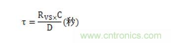 如上图所示,在自举驱动芯片VS端与Q1的源极之间增加一个电阻Rvs,该电阻不仅是自举限流电阻,同时还是导通电阻和关断电阻。由于占空比受自举电容影响,该电阻值一般不能取得较大,推荐值为3~10Ω较为适宜。电阻和自举电容的容值与其充电时间可以由以下公式得出: