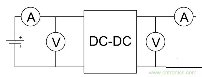 以上分析了不同的负载阻抗与功率特征阻抗下电表的损耗,哪到底选用哪种?需要根据测量对象选择。以测试DC-DC转换器效率为例,需要测量转换器输入功率和输出功率。输入功率即是转换器吸收的功率,应尽量减少电表的损耗,所以需要把损耗小的电表内接,把损耗大的电表功率排除。输出功率是转换器提供的功率,电表损耗和负载功率都是由转换器提供,要将电表损耗功率计入转换器输出功率,因此把损耗大的电表进行内接。