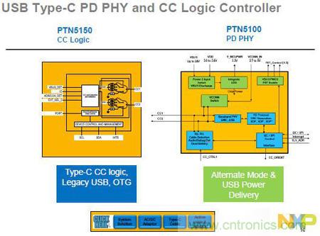 不同的应用场景,不同的复杂度层次,NXP有不同的产品和方案来搭配,为设计者提供达到系统最佳化的方案。下图中展示了NXP的CC逻辑控制和PD PHY方案。吴韶阡介绍说,如果是低于15W的供电,或者是不需要支持多功能的设计,可以采用简单的CC逻辑控制;而一个完整的USB Type-C方案就需要使用完整的PD方案,相应的元器件也会增加。
