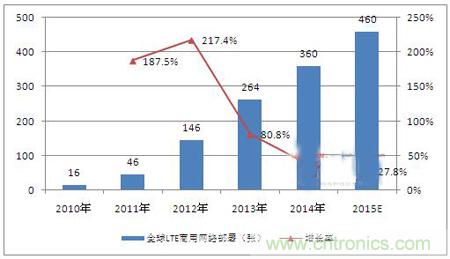 图表1: 2010-2015年全球商用LTE网络部署数量