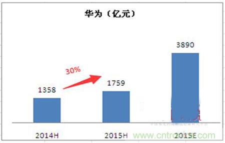 华为2015年上半年实现销售收入1759亿人民币,较上一年同期的1358亿人民币增长30%,营业利润率18%。而在最近迪拜举行的华为网络峰会上,华为表示预计2015年全球营收增长超过29%,达到600亿美元以上。华为去年的总营收为465亿美元。