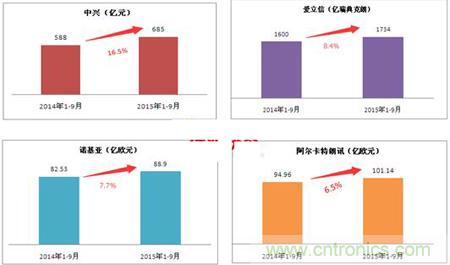 爱立信前三季度实现销售收入1734亿瑞典克朗,2014年同期为1600亿瑞典克朗,同比增长8.38%;净利润为67亿瑞典克朗,去年同期为70亿瑞典克朗。
