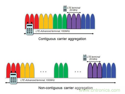 运营商目前处于载波聚合(CA)技术部署初期,这是LTE Advanced标准(3GPP Release 10)的一个特性。借助CA,运营商可以提高数据容量和吞吐量,其方式是把最多五个分量载波(每个载波在 1.4-20MHz之间)组合成最高达100MHz的总带宽。