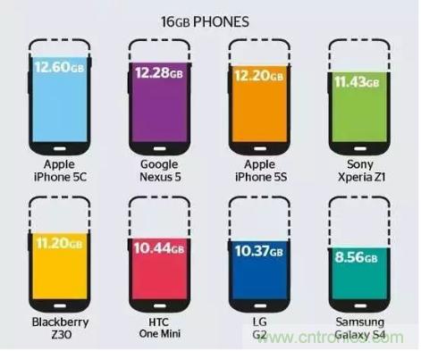 基于以上两点原因,16G的手机容量无法达到标称值的答案已经很清晰了。由于NAND Flash存在坏块的现象,绝对的存储容量也就相应减少了;加上手机操作系统的大小,和预装的一些软件,标称16GB的手机,留给用户的使用空间就进一步减少了。