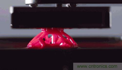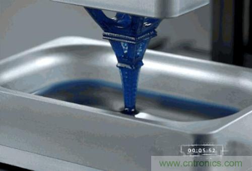 在从液体里“拉”出固体的3D打印技术当中,活化固化剂的方式从热压变成了光,所以这种技术被称为立体光固化成型(SLA)。这里所用到的液体材料被称为光敏树脂,一般是环氧树脂或不饱和聚酯等掺杂一些对特定波长敏感的光引发剂制成的。这类技术本身也并不是什么新生事物了,它的历史可以追溯到1984年。