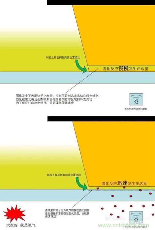 在此前,解决这一问题的方法主要是降低固化速度,在树脂完全固化之前移动底板,使部分固化的树脂与透光板脱离接触,新的低粘度树脂会补充到原来的位置,然后再开始下一层的固化。但这样一来,打印速度就无法有效提高了。
