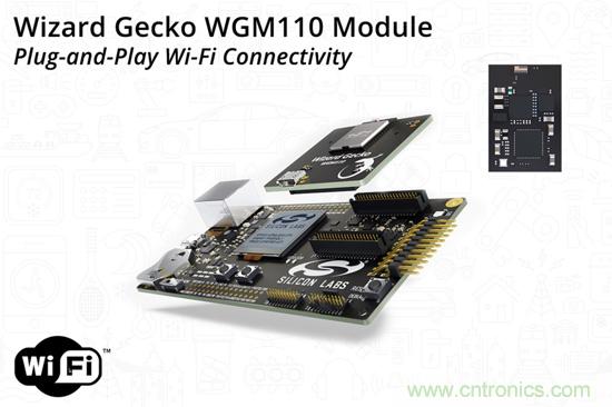 Silicon Labs全集成Wizard Gecko WGM110??榻饩龇桨赴耸迪挚煽縄oT Wi-Fi连接所需的所有必要元素:高性能2.4GHz 802.11b/g/n无线电、内置天线、全球认证、节能型EFM32™ Gecko微控制器(MCU)、嵌入式Wi-Fi协议栈和多种互联网协议(包括带有TLS安全的TCP和UDP)。