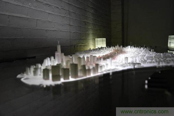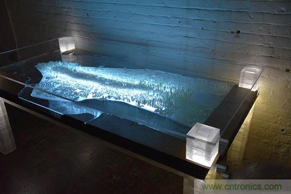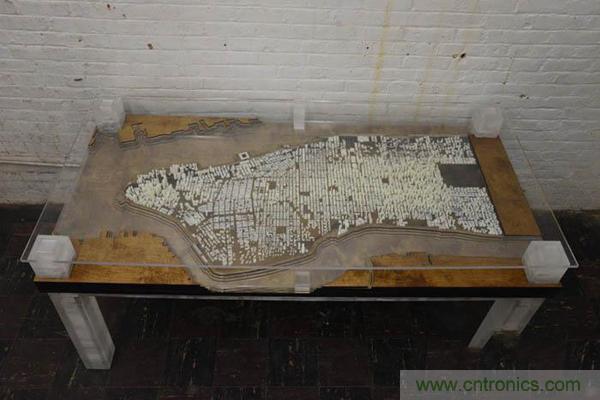【导读】在纽约长大的艺术家Troy Huang使用3D打印和激光切割技术制作了一张让人惊艳的桌子,这张桌子上布满了曼哈顿的每一栋建筑模型。这就是曼哈顿城区的微缩模型,尽管是微缩的,但是其中的每栋建筑、每条街道都清清楚楚,十分精细,再用LED灯点亮,一座灿烂辉煌的世界之都呈现在我们眼前。