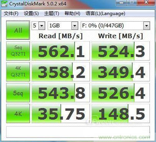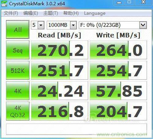 HyperX Savage 240G SSD接在原生的SATA3.0接口上的测试成绩完胜SATA2.0。在SATA2.0接口上,持续读写速度仅270 MB/s / 264MB/s,而相对的,SATA3.0高达545 MB/s /527MB/s,很明显受到接口理论传输性能的限制。另外,4K随机读写方面也受到不少的影响。