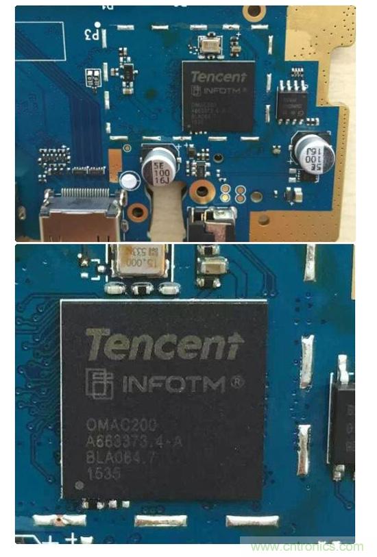 2015年11月9日,腾讯miniStation微游戏机发布,经拆解后发现主芯片上醒目地印有两个Logo:Tencent、INFOTM。
