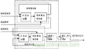 图1所示的DDS原理框图是用于实现固定频率的正弦波信号,按照公式(3)的思路实时改变ΔΦ,即可产生线性调频信号。