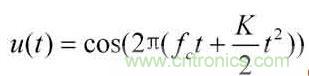 式中fe为载波频率,K=B/T是调频斜率,于是,信号的瞬时频率为。