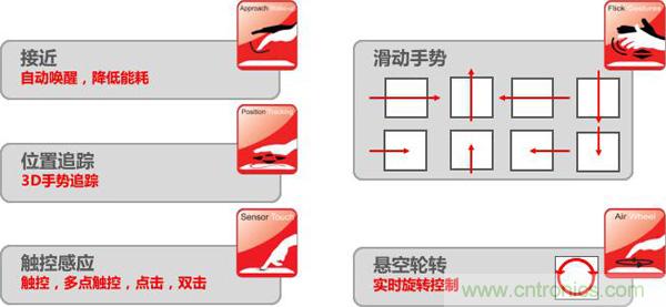 图3:GestIC技术可识别的3D手势和动作