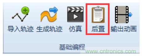 最后只需点击一下后置,我们设计好的轨迹就可以转化为机器人可识别的语言供机器人按照我们设计的轨迹进行工作。