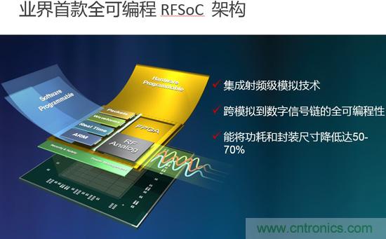 赛灵思全新的All Programmable RFSoC 消除了分立数据转换器,可将5GMassive-MIMO和毫米波无线回传应用的功耗和封装尺寸削减50-75%。