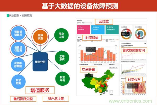举例而言,设备故障预判是智能电器最基本的一项智慧化服务,它通过云端预置的故障模型,分析所采集到的家电基础数据与实时运行数据,从而为消费者提供一些增值服务,如上门清洗维护、故障报警、上门维修等,同时帮助企业进行决策分析,如售后资源分配、下一代产品的优化等。