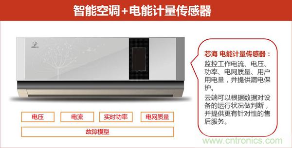 “比如智能空调”,王伟表示,“由芯??萍纪瞥龅牡缒芗屏?a target="_blank" style="text-decoration:none;" >传感器,不仅可以监测用电量,帮助用户实现家庭能源管理,还可以实时监测设备的电压、电流、功率及区域电网质量,搭配我们与客户共同研发的故障模型,从而完成对空调故障、制冷、漏水、固件损坏的预判,针对性为用户提供售后服务。”