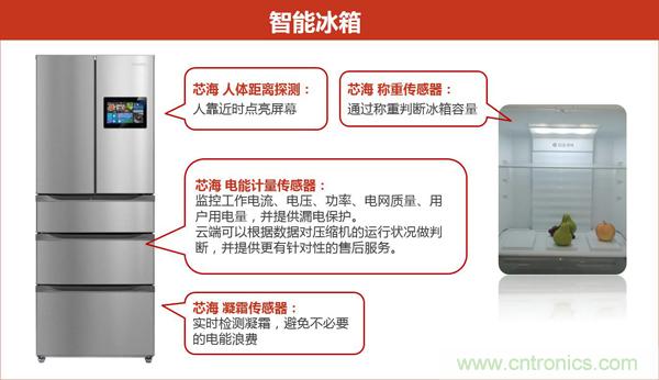而在冰箱内部,我们同样提供了称重传感器。美的智能冰箱就号称,放上一个苹果,就能够自动识别它的品类、重量、产地等相关信息,并通过大数据分析,在苹果快要吃完的时候自动下单购买付款、送货到家。