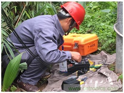 野外现场——第一时间赶到现场,通过住友电工T-400S熔接机快速接续线路,保障网络畅通