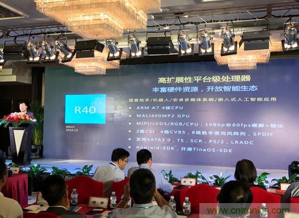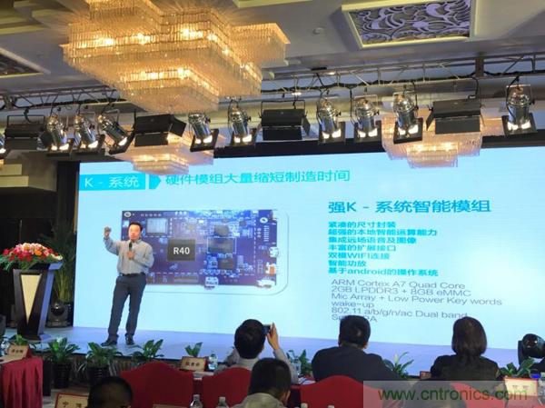 随后,李智展示了全志最具扩展性的智能硬件开放平台R40系统,R40有远场语音交互、多显示接口和音视频编解码等优势,非常适用于语音助手、机器人、定制化的安卓多媒体系统产品开发。