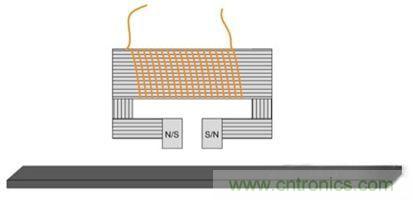 在实用化系统中需要用到一个写入磁头,它其实就是绕在磁心上的一个线圈。通过控制线圈中的电流方向可以很容易编程磁场方向。这有助于在磁卡上形成南北极图案。磁极之间的空隙越窄,磁卡上能够编程的数据密度就越高。