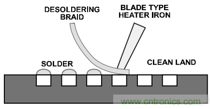 移除PBGA器件之后,PCB上的焊盘会有过多的焊料,必须在安装替换PBGA器件之前予以清理。焊盘清理可分为两步: