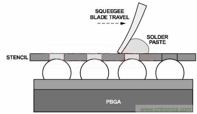 图8. 焊膏模板将焊膏印制到焊球上