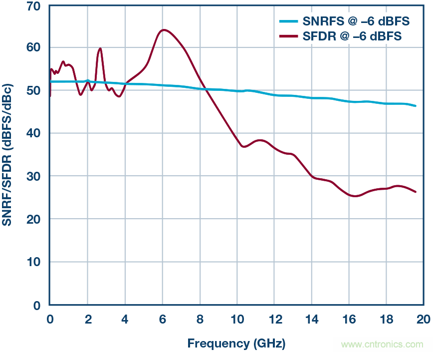 图6. –6 dBFS时的SNRFS/SFDR性能结果。