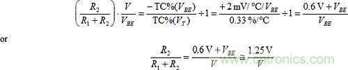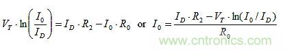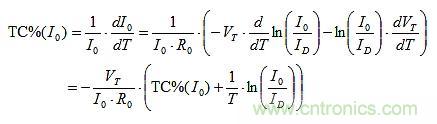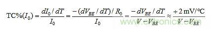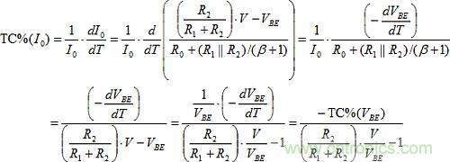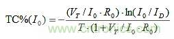 TC%(I0) = TC%(IE)的设定可以建构如下。R0上的唯一变化来自VBE。因此,由T引起的I0的分数变化是: