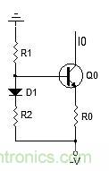 图2:电路在R0两端的电压为V – VBE(Q0)。