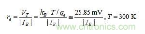 在rM中最麻烦的一项是re,因为它随着温度和发射极电流IE而变化,根据: