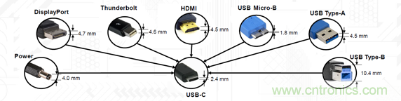 图1:标准USB-C接口可以替代消费类设备中的多个其他接口