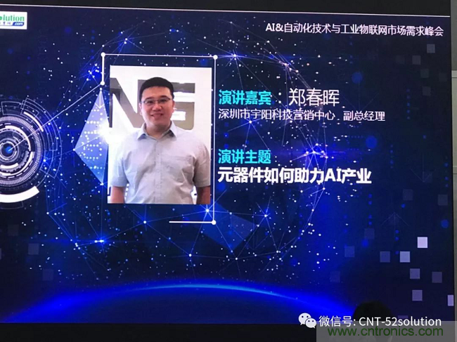 为积极推动跨行业的电子开发需求与方案服务商的对接,大力发展技术外包服务,服务国家创新战略,抢占人工智能技术和应用的制高点,近日,我爱方案网策划主办了2018AI&自动化技术与工业物联网市场需求峰会,这是第六届中国电子信息博览会的核心活动。中国优秀的元件技术供应商宇阳科技副总郑春晖在峰会上做《元器件如何助力AI产业》的大会报告。